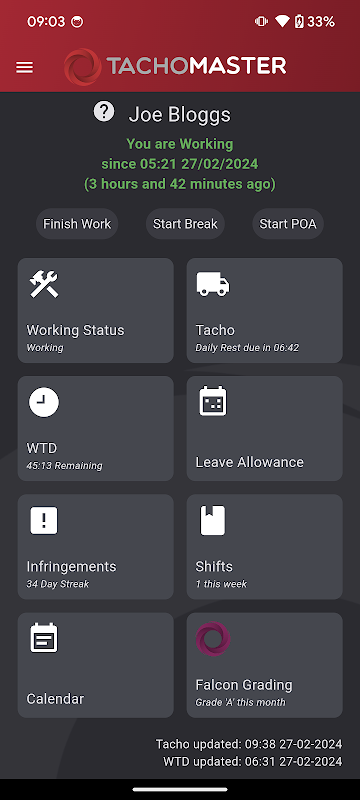 Acompanhe os seus tacógrafo e WTD vezes com o Tachomaster Trabalhador App.