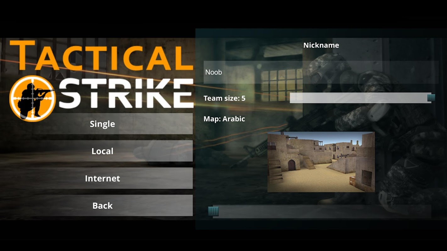 Tactical Strike - шутер от первого лица c различными игровыми картами. Игра поддерживает соло или командный режим игры.