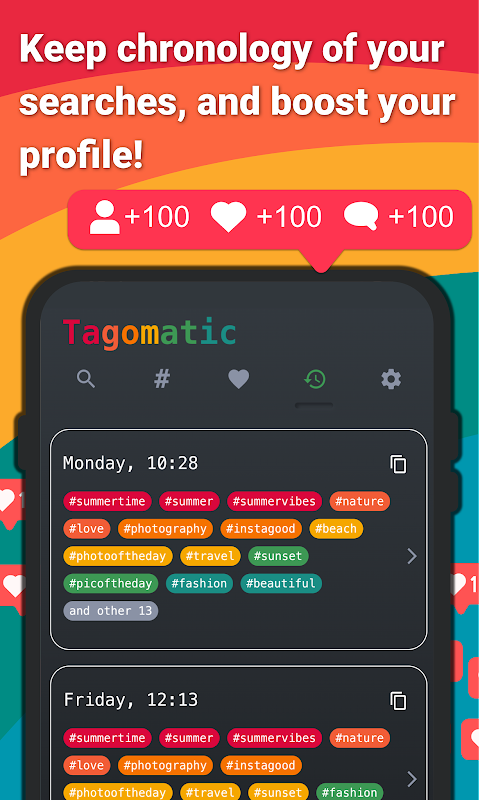 Digite uma única palavra e Tagomatic irá procurar entre os hashtag mais tendência e escolher os melhores relacionadas com o seu.
