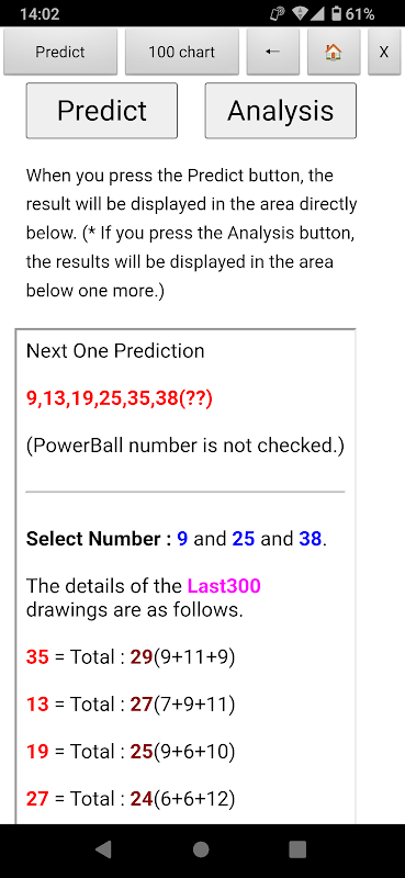 Este software não é um software de previsão perfeito porque você mesmo precisa prever os dois ou três números usando "Taiwan LOTTO 6/49, SUPER LOTTO 638, Daily Cash 539 e os números vencedores do Hong Kong Mark Six após 100 gráficos".