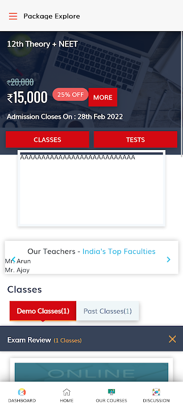 como JEE, NEET, MHT-CET. A Academia oferece cursos intensivos,
