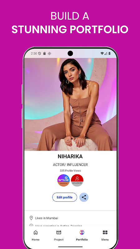 - Crie um portfólio impressionante com várias fotos, vídeos, áudio e biografia