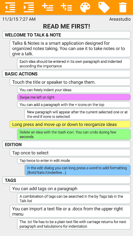Talk & nota é um que toma notas aplicação com apresentação hierárquica e vista mapa mental.