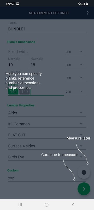 TallyExpress é um aplicativo móvel para medir madeira serrada com e sem corte. Tire uma foto do pacote e verifique os resultados imediatamente! Usando inteligência artificial, o aplicativo detecta por conta própria as placas, calcula as larguras, o volume e gera um relatório de contagem. Todas as medições podem ser compartilhadas com seus parceiros de negócios ou enviadas para seu sistema de gerenciamento de estoque.