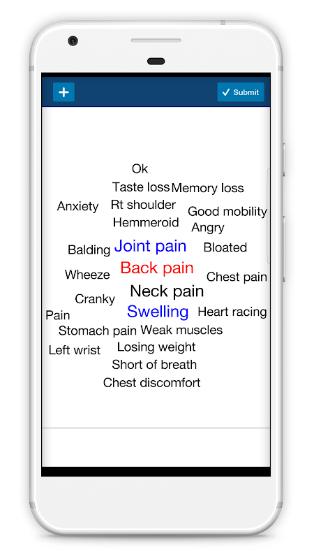 - Rastreamento de sintomas: rastrear como e o que você sente nunca foi tão fácil, nossa abordagem na nuvem é tão simples quanto um toque