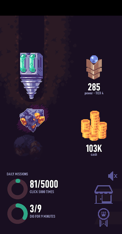 With the clicker gameplay in Tapmine Clicker, mine deeper with a tap on the screen. Once you upgrade your ship, you can make the clicker drill mine by itself, helping you go faster with your taps.