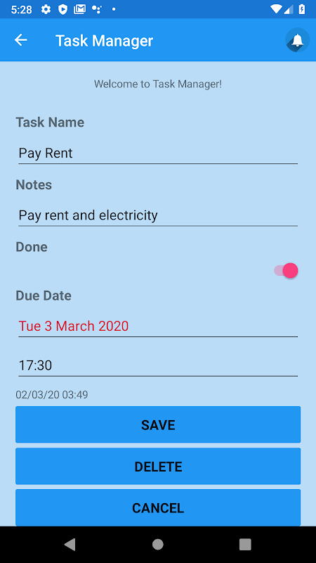 * Add a reminder for the task in your android calendar