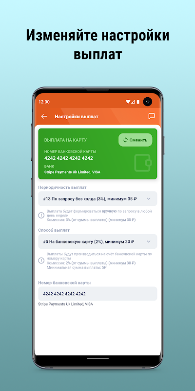 Esta aplicação permite-lhe ver o seu saldo total atual para todos os agregadores da sua frota de táxis, escolher de forma independente o método e a frequência dos pagamentos, indicar os detalhes do seu pagamento, bem como visualizar o histórico e o status deles.