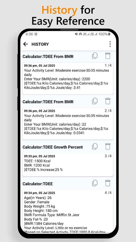 ► Cálculos TDEE precisos: calcule facilmente seu gasto total diário de energia com base em sua idade, peso, altura, sexo e nível de atividade para entender suas necessidades calóricas.