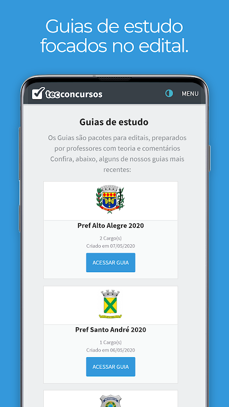 Aplicativo da melhor plataforma de questões. E não é só isso! Material teórico (texto, vídeo e mapas mentais) de qualidade e todos os recursos tecnológicos que o só o Tec Concursos oferece.