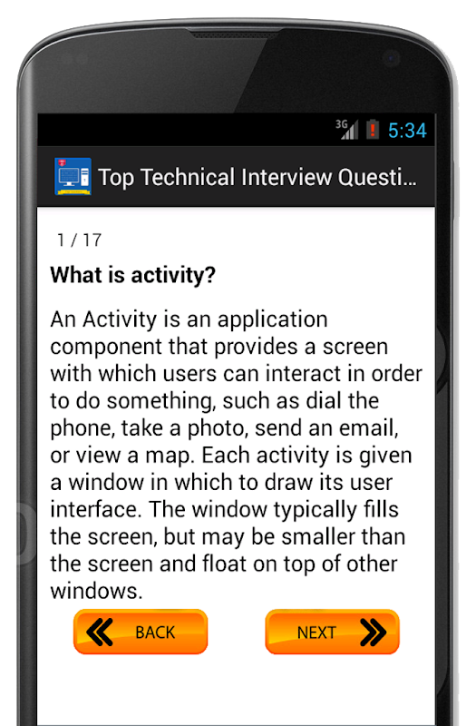this application has many frequently asked C, C++, Java, Android & Hadoop questions with answers, the questions and answers are gathered from numerous sources including real interviews. This application is very very helpful for both an interviewer ( to quickly come up with questions) and for a student . Great for brushing up technical interview questions before an interview.