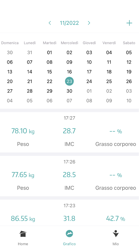 Potrai controllare la saude del tuo corpo: massa corpórea, massa muscular, acqua corpórea, peso IMC, grasso e molto altro ancora.