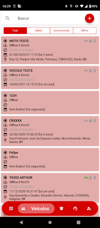 - Velocidade ao vivo, tempo parado e desconectado;