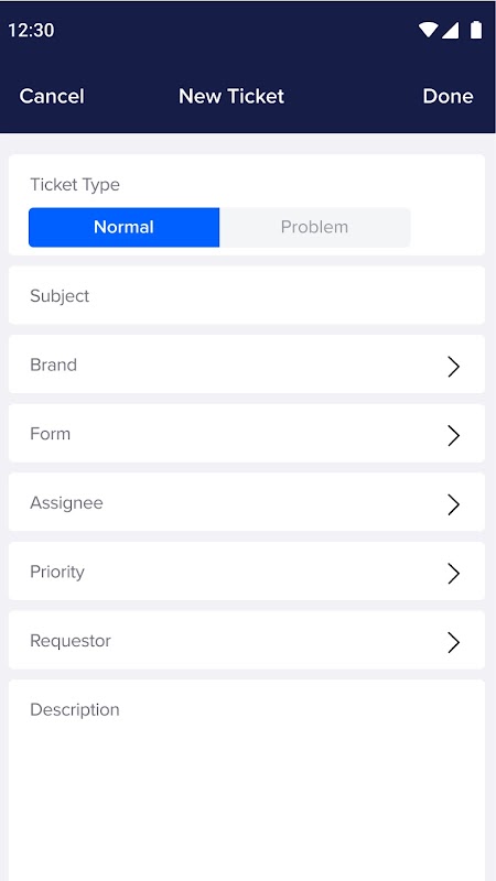 O Agente de Suporte/PSM/ISM pode criar um ticket no aplicativo móvel em nome do cliente para relatar um problema ou solicitar assistência.
