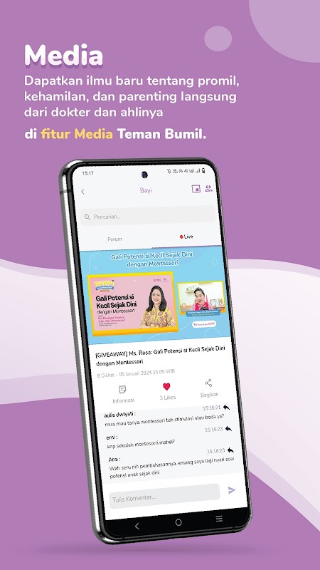 As mães podem garantir uma gravidez tranquila, verificar se há uma gravidez saudável e obter educação parental lendo mais de 1.000 artigos sobre Teman Bumil. Os artigos estão disponíveis cronologicamente de acordo com a fase, para que sejam de fácil acesso e acompanhem as necessidades.