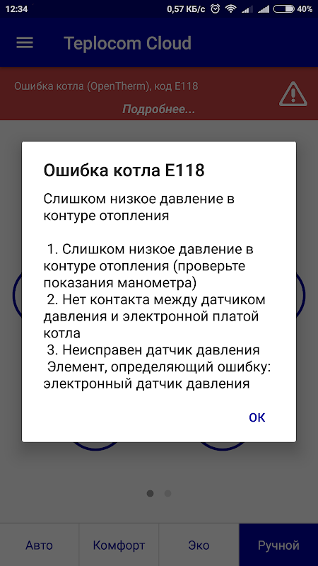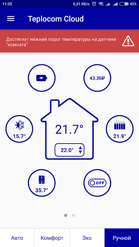 O aplicativo foi desenvolvido para informá-lo sobre o estado do sistema de aquecimento e avisá-lo sobre situações de emergência que levem à interrupção do fornecimento de calor, bem como do controle remoto.
