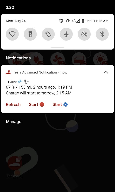 Este aplicativo oferece uma notificação útil com o estado do carro, o último status da bateria e o estado de carga, sem acordar o carro!