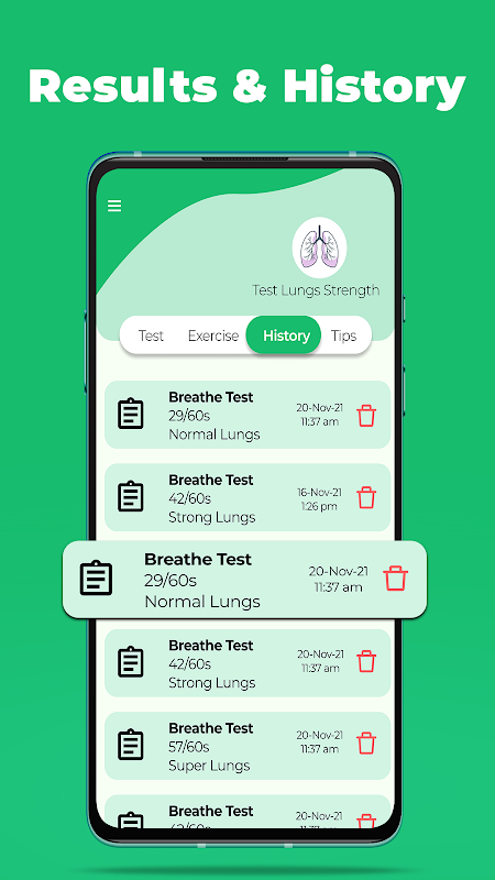Este aplicativo é usado para testar a força de seus pulmões. Na maioria dos casos, os pacientes com asma ou outros pulmões crônicos precisam visitar o médico com frequência para exames de rotina. O aplicativo Test lungs agora resolveu todos os seus problemas. Tudo que você precisa é simplesmente tomar oxigênio e fazer o teste enquanto prende a respiração. Depois disso, o teste de respiração fará o trabalho. Um teste de capacidade pulmonar mostrará imediatamente os resultados se você tiver pulmões normais, pulmões fortes ou superpulmões. Em segundo lugar, os pulmões de teste permitirão que você faça exercícios respiratórios. Simplesmente mostrará como respirar. Além disso, algumas dicas também são citadas no teste zydus pulmões / respiratórios relacionados à alimentação e ao ambiente, por meio das quais você pode deixar seus pulmões mais saudáveis.