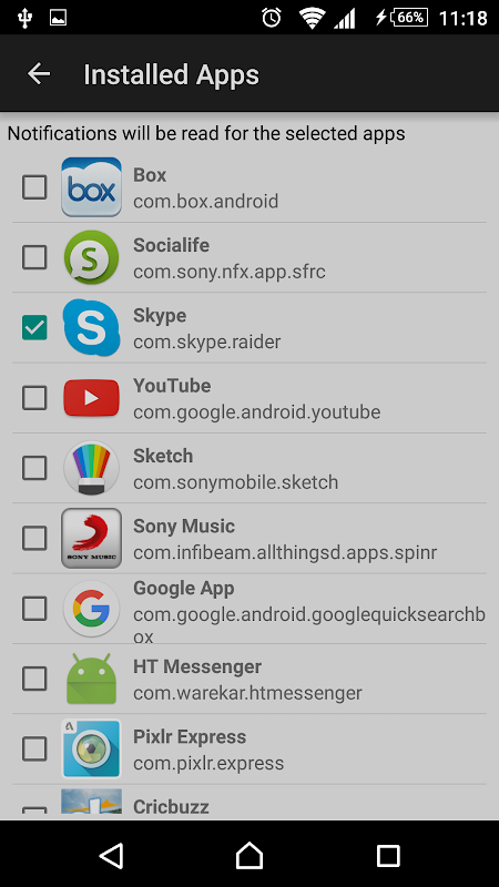 - Lê notificação somente para os aplicativos selecionados