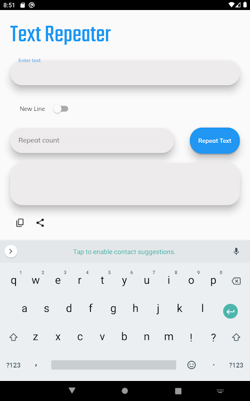 🔄 Repetições rápidas e fáceis: digite seu texto, selecione a contagem de repetições e deixe o Text Repeater cuidar do resto. Diga olá à duplicação sem esforço!