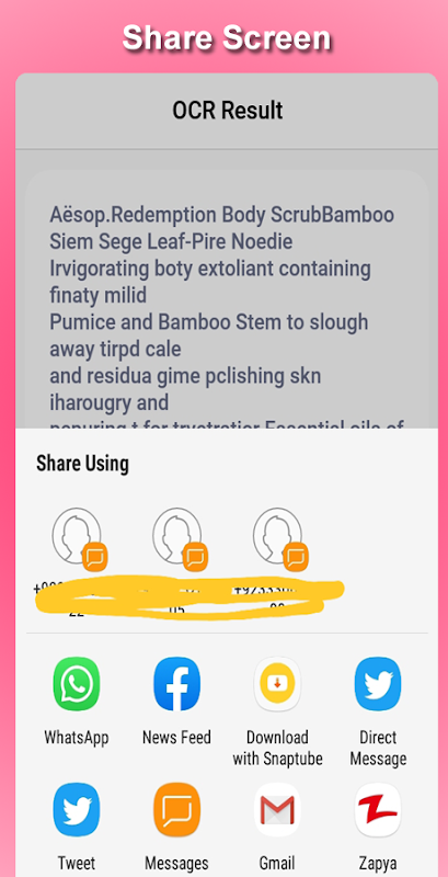 This is a FREE text scanner & converter application that scan your text that can later can be send via email or share on social media or you can copy that text in clipboard and later can be used in any other app.