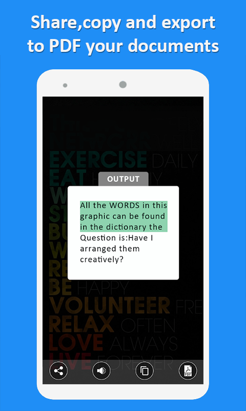 Image to text converter: Text Scanner is the best Text Scanner [OCR]: new image translator app and image to text converter app. This is a fast and text scanner and translator application that will scan text that can later be used either by sending via email, sharing on social media or you can also copy the text in clipboard for later use in any of other apps in your device.