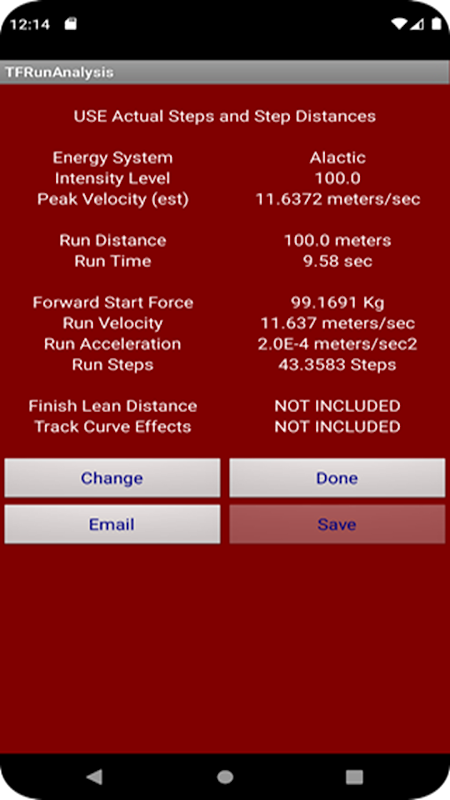 O aplicativo TFRunAnalysis (parte da série TF) é baseado em um modelo de atleta preciso e completo para avaliar o desempenho e o condicionamento físico do evento. Ele fornece análise de desempenho, previsão e treinamento para sprint de atletismo, distância, obstáculo, revezamento e eventos combinados.
