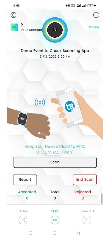 Código QR, leitura de código de barras e RFID: Os participantes normalmente recebem um código QR ou código de barras ao comprar seus ingressos através do TicketGateway. O aplicativo de digitalização lê esse código para confirmar a entrada, garantindo que cada ingresso seja usado apenas uma vez e reduzindo o risco de ingressos e pulseiras falsificados.