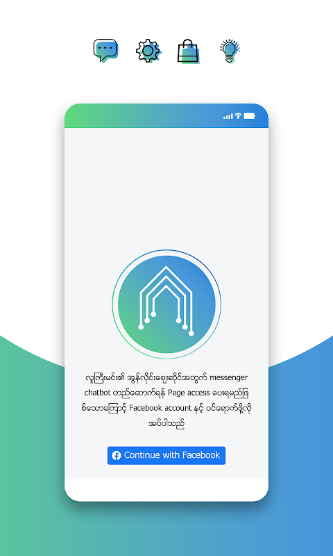Clique em Clique no recurso de chatbot Clique no recurso ပါရှိပါသည်။ မိမိ၏ página နှင့် ချိတ်ဆက် လိုက် ပြီးနောက် ထည့် သွင်း ခြင်း၊ ဈေးနှုန်းများ အပြောင်းအလဲလုပ် ခြင်း ပါ ထည့် သွင်း ခြင်း အပြင် အော် ဒါ ပါ App ထဲတွင် တစ်စုတစ်စည်းတည်း ကြည့် ရှှု နိုင်ပါသည်.