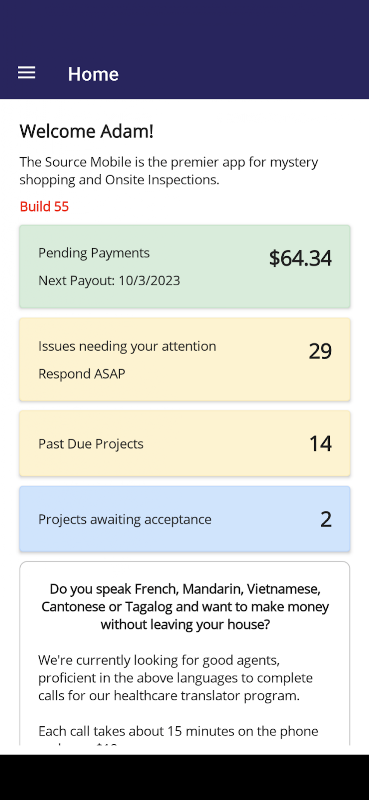 The Source é o fornecedor exclusivo de banco de dados de agentes de campo da TrendSource, Inc. The Source oferece uma ampla variedade de oportunidades para indivíduos que desejam ganhar algum dinheiro extra em seu próprio tempo, incluindo compras misteriosas, interceptações de clientes, inspeções profissionais no local, auditorias de preços competitivos, e muito mais!