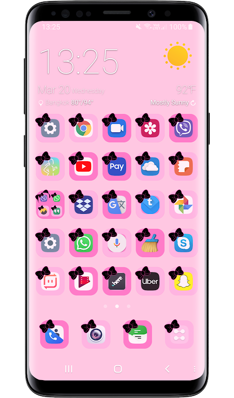 - Todos os ícones do seu aplicativo ficarão lindos e cor-de-rosa com uma decoração fofa de fitas