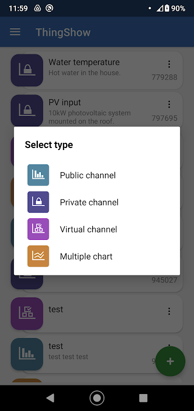 Ao criar um canal local, o ThingShow pode funcionar como um servidor web HTTP na rede local, armazenando dados no dispositivo atual. Ele é compatível com a API REST do ThingSpeak e também pode espelhar dados para o servidor ThingSpeak. Opções de importação e exportação também estão disponíveis. Isso é útil quando não há internet disponível ou a conexão é instável. Os dados também podem ser acessados remotamente de fora da rede usando serviços VPN gratuitos ou pagos, como o "Tailscale". Você pode usar um canal local completo gratuitamente por uma semana. Esse canal precisa ser excluído e recriado para continuar usando gratuitamente. O recurso pago oferece canais locais ilimitados e sem limite de tempo. Tudo depende do desempenho do dispositivo. Lembre-se de que o dispositivo consumirá a bateria mais rapidamente devido ao uso frequente da rede.