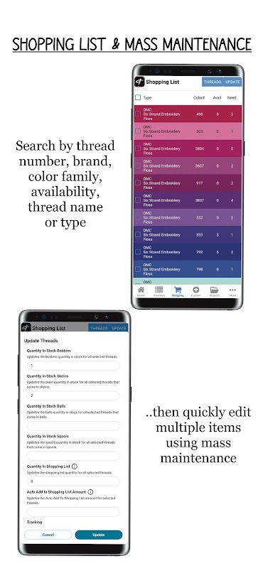 • Visualize e gerencie o estoque de mais de 3.000 linhas DMC