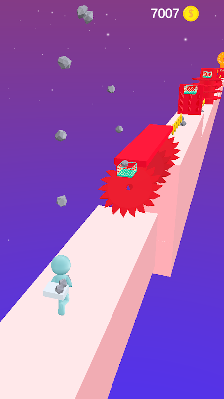 Throw the rocks in time so that the obstacles go down and the path is flat