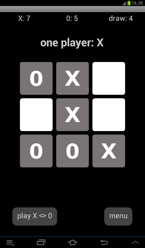 - one player: player X vs computer 0.