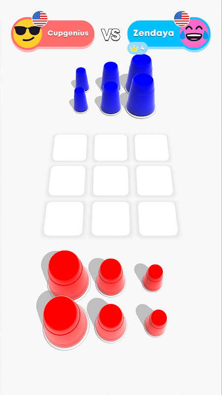 Play real-time with friends. No robots, just real people! It's three in a row but with a BIG DIFFERENCE! Firstly, you can stack your cups, plus you can move them, so it's a really tactical battle. Every game is totally unique and it will really make you think how to play best to beat your opposition. Get ready to stack, get ready to tick-stack-toe!!