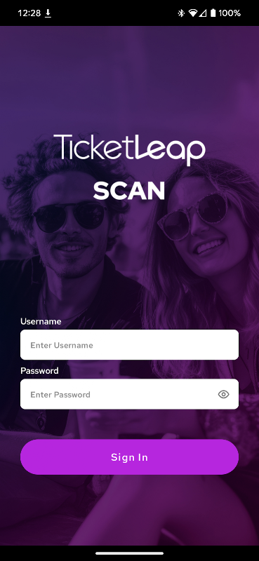 Aplicativo de check-in móvel da TicketLeap para eventos ao vivo.