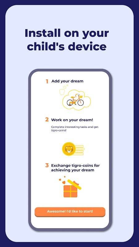 Tigrow! - instalado no telefone do seu filho, sincroniza com o aplicativo Kid Security