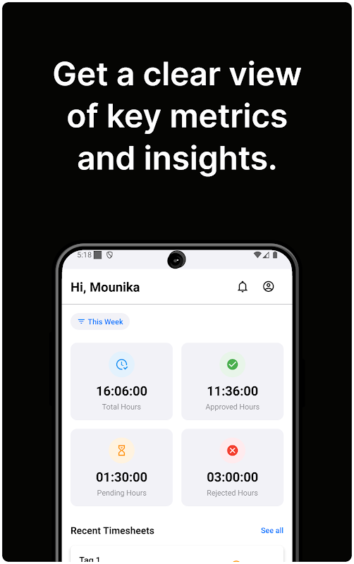 Aplicativo de quadro de horários inteligente para registrar, rastrear e aprovar horas de trabalho com facilidade.