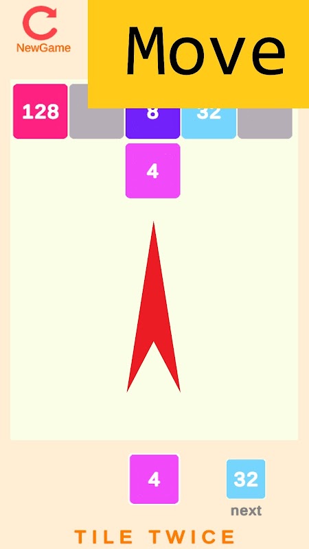 Toque na tela para mover as peças para os cinco quadrados e, quando as peças do mesmo número são anexadas umas às outras, elas se fundem e dobram em número.