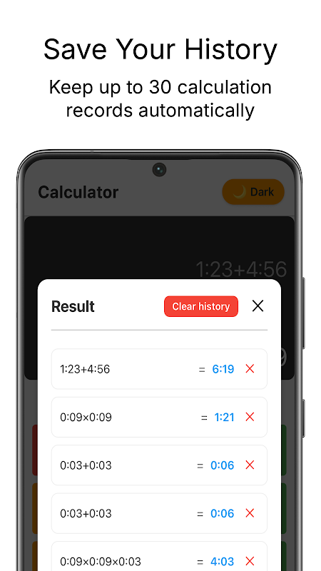 Calculadora rápida de horas e minutos: some, subtraia, multi e guarde histórico.