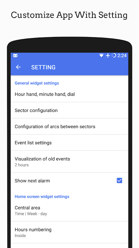 - Widget with a completely customizable look so you can examine your schedule the way you like