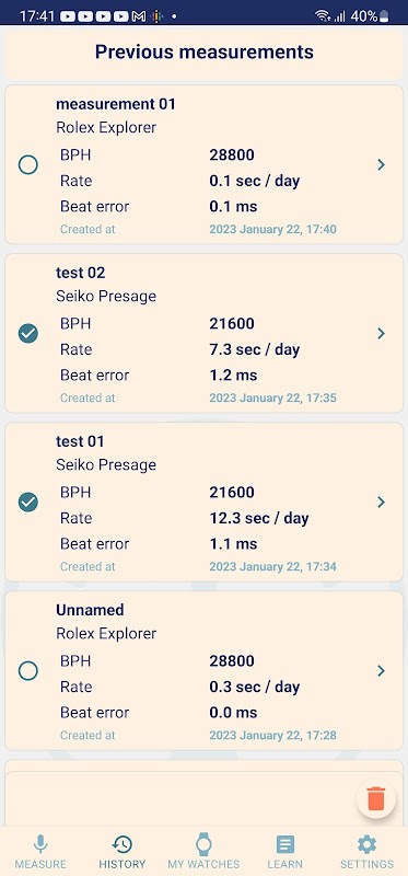 O aplicativo usa o microfone do seu dispositivo para detectar o tique-taque do seu relógio.
