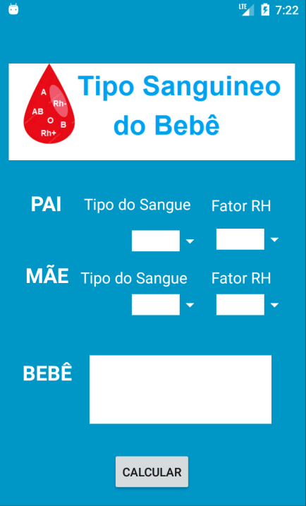 Esta calculadora permite saber o sangue do bebê e o fator Rh.