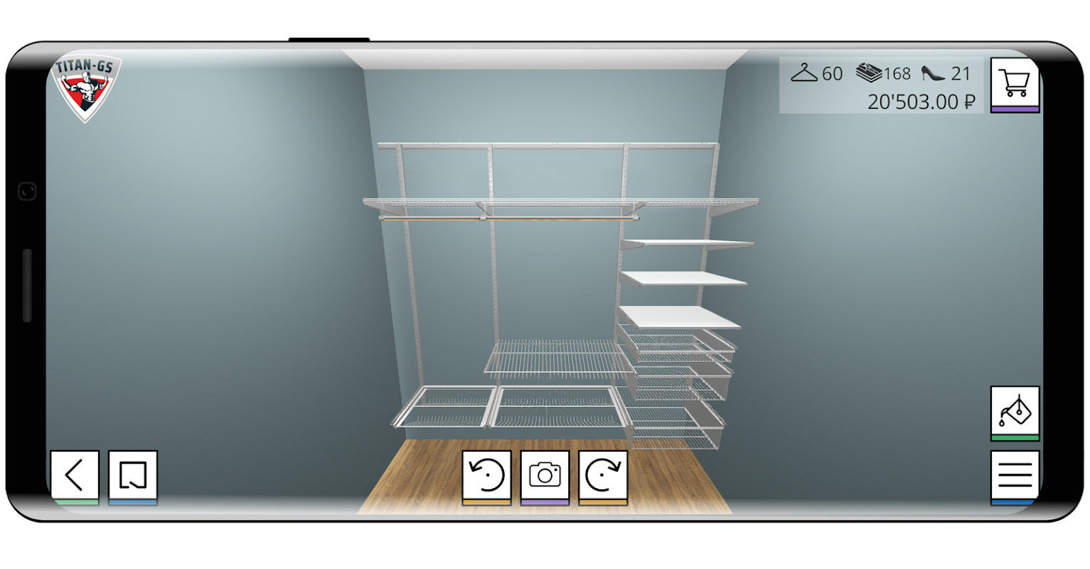 Usando o aplicativo TITAN-GS, em poucos minutos você criará seu próprio sistema de armazenamento ou camarim, calculará o enchimento e verá o aspecto visual da composição acabada.