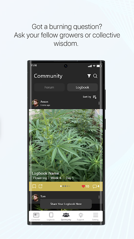 - Nova função Logbook: Permite acompanhar as etapas, hora e data da sua planta. Registre os dados da planta como Ambiente e parâmetros de alimentação; informações da planta e detalhes de configuração da sala.