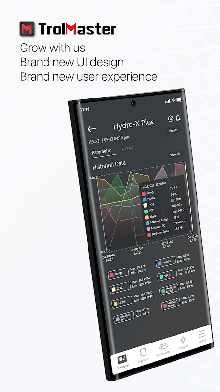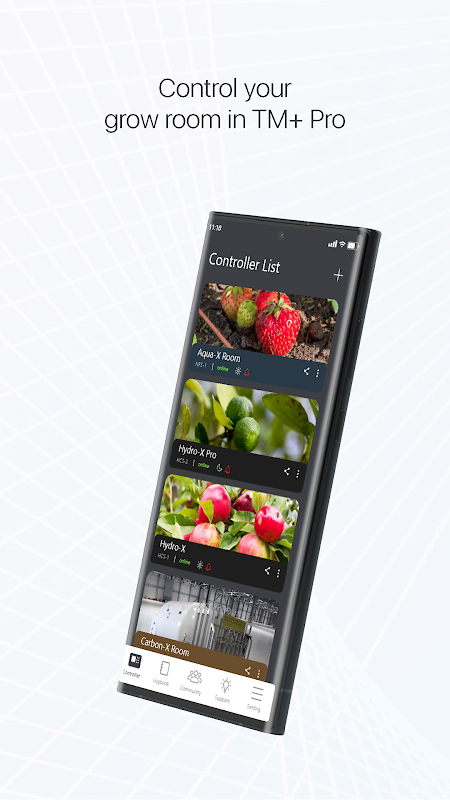 O TM+ Pro oferece acesso e controle remotos dos sistemas de controle TrolMaster: Hydro-X, Aqua-X, Carbon-X e Hawkeye. Os controladores e sistemas de controle fornecem a solução definitiva para automação de horticultura, permitindo que você monitore e controle todos os aspectos de suas instalações de cultivo em qualquer lugar, a qualquer hora.