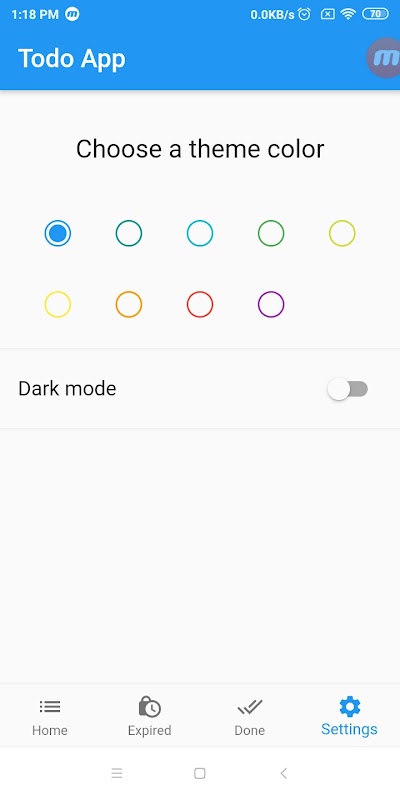4 / O aplicativo é altamente personalizável. Você pode escolher qualquer cor para o seu aplicativo e escolher o modo escuro se desejar.