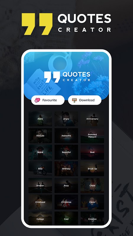 Quote Maker app is a photo editing app that helps users make quotes using beautiful typography fonts with picture. Quotes Creator is the best and easiest way to create and share your quotes with the world. This app also has a collection of thousands of template quotes. You can download and share instantly. You can save the quote design template that you have made by customizing. Best motivational and life changing quotes of various categories with stunning quotes creator options.