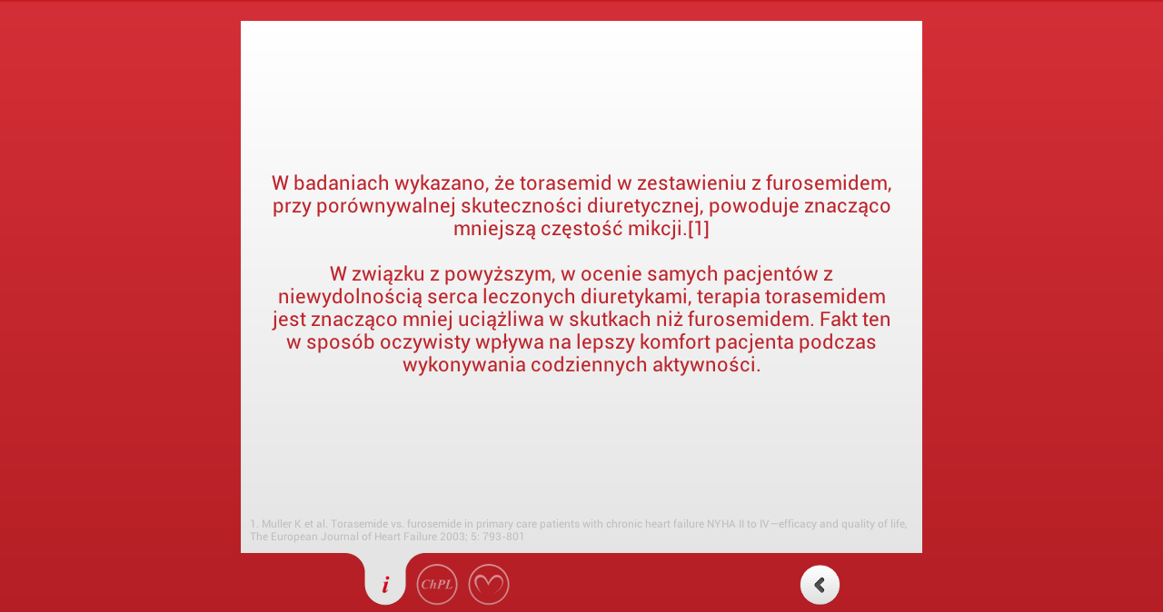 Aplikacja Toramide jest przeznaczona wyłącznie dla lekarzy i farmaceutów. Aplikacja pozwala na łatwie przeliczenie dawki torasemidu i pacjentów leczonych furosemidem. Dowiedz się jak dawkować.